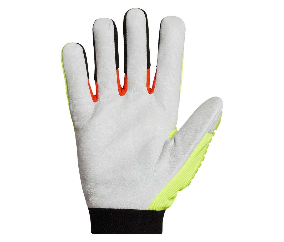 High tensile strength goatskin provides outstanding abrasion resistance while leather wraps around fingertips to eliminate seam placement in traditional wear areas for increased lifespan